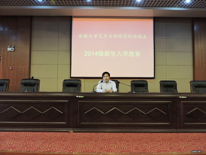 为了让大一新生更好的了解大学生活,帮助同学认识自我和树立信心,安徽大学艺术与传媒学院传媒系于9月28日下午13点30分,在学术报告厅开展了新生入学教育专题讲座。传媒系主任韩大国、学管秘书刘勇、教学秘书李倩及各班班主任出席了本次入学教育。