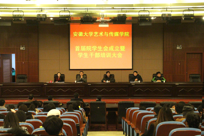 12月8日下午,安徽大学艺术与传媒学院第一届“院学生会成立暨学生干部培训大会”在院学术报告厅隆重召开。监察审计处处长赵枞安,教务与学生工作部副部长、学院团委书记刘长华,院团委青年委员龙源老师出席会议。会议由院团委副书记陈明主持。