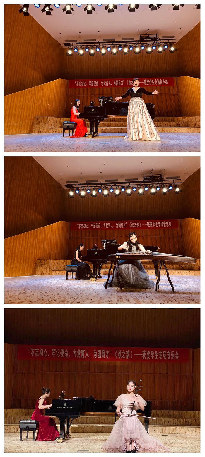 11月22日下午,由学院党委主办、学院“不忘初心、牢记使命”主题教育领导小组办公室和音乐舞蹈系承办的“不忘初心、牢记使命、为党育人、为国育才”《秋之韵》——获奖学生专场音乐会在音乐南楼音乐厅举行。学院党委书记、院长樊嘉禄及党委班子成员、学院全体中层以上干部、教职工党员与同学们一起观看了演出。