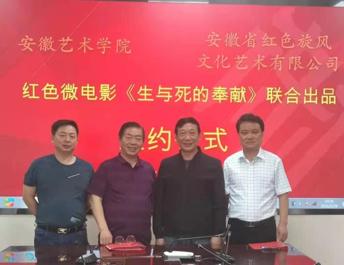 5月28日下午,金沙集团与安徽省红色旋风文化艺术有限公司签约,联合出品红色微电影《生与死的奉献》。校行政负责人张晶,安徽省红色旋风文化艺术有限公司董事长、著名影视编剧傅琳,校科研处、发展规划处处长陈明海,影视制片人傅桂等参加签约仪式。陈明海代表学校与安徽省红色旋风文化艺术有限公司签订联合出品协议。