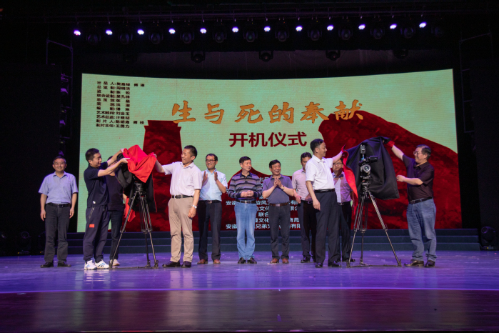为庆祝中国共产党成立100周年,讴歌安徽革命文化和精神谱系,着力打造“党建+艺术”文化精品,金沙集团888881与安徽省红色旋风文化艺术有限公司联合出品红色微电影《生与死的奉献》。6月4日下午,红色微电影《生与死的奉献》开机仪式在金沙集团戏剧楼小剧场举行。校党委书记周明洁,党委副书记、院长樊嘉禄,行政负责人张晶,党委委员、组织部部长曹晓富,党委委员、宣传(统战)部部长吴孔铎,科研处处长陈明海,安徽省电影电视评论学会名誉会长刘金玉,安徽省电影电视艺术家协会秘书长殷大文,安徽省人民政府参事室(省文史馆) 研究员、著名作家傅琳,中国知名新锐导演张锐,资深电影人王国力,电影制片人傅桂,以及新闻媒体记者和师生近200人参加开机仪式。