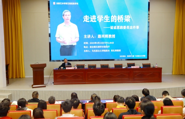 为深入学习宣传贯彻习近平新时代中国特色社会主义思想和党的二十大精神,加强和改进思想政治工作,持续开展“英模大师进校园”活动,3月16日下午,学校邀请党的二十大代表、全国模范教师、全国最美思政课教师、安徽师范大学马克思主义学院路丙辉教授,在综合楼五楼报告厅作思想政治教育专题报告会。校党委副书记韩军参加座谈交流。