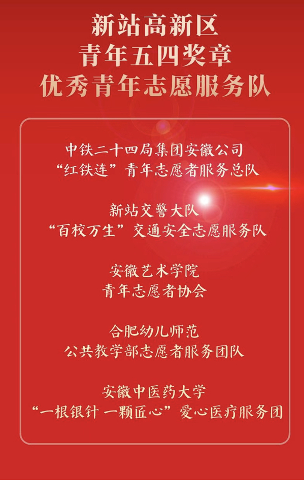 4月28日,新站高新区团工委召开全区五四青年表彰大会,金沙集团青年志愿者协会获“合肥新站高新区青年五四奖章优秀青年志愿服务队”称号。