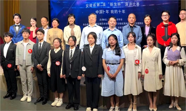 比赛由安徽省演讲学会主办,校团委和传媒学院承办,安徽省演讲学会大学生理事会协办,以“中国的十年 我的十年”为主题,引导大学生培养责任意识、奉献意识,激励大学生以实现中华民族伟大复兴为己任,不负时代、不负韶华,踔厉奋发、勇毅前行。(撰稿:张乐贤 摄影:姚若希 初核:张志云 龙源 编辑:朱新水 审定:束舒娅)