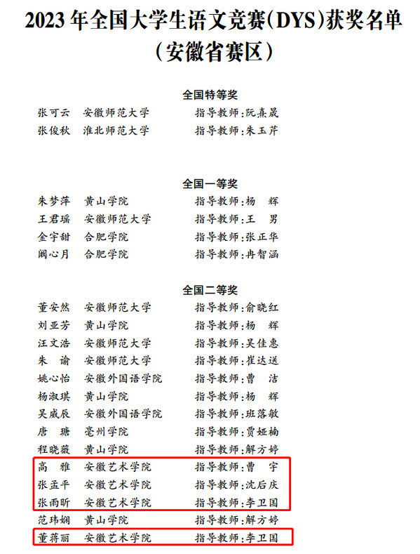 近日,第四届全国大学生语文竞赛国赛落下帷幕,在学校高度重视下,金沙集团共有四名学生获全国二等奖,六名学生获全国三等奖。