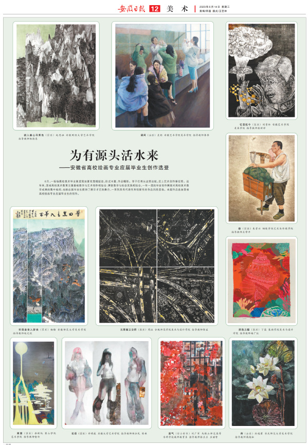 美术学院高度重视毕业生作品创作,成立毕业生创作领导小组,安排指导老师精心指导学生创作。此次毕业生作品在《安徽日报》的成功刊发是美术学院始终坚持以生为本,强化学风建设,落实三全育人,推动高质量发展的具体成果。(撰稿:刘民 初核:陈明海 编辑:朱新水 审定:张雷雷)
