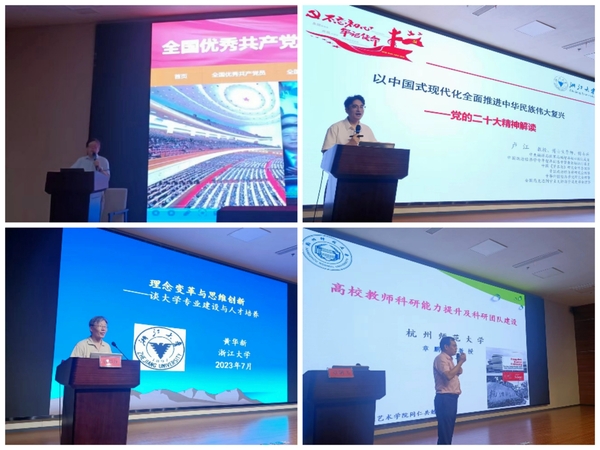 培训邀请浙江大学和杭州师范大学多位知名博士、教授,分别就加强师德师风建设、学习宣传贯彻党的二十大精神、提升高校教师科研能力及科研团队建设、大学专业建设与人才培养等展开授课。各位专家的讲授内容见解精辟、深入浅出,有效帮助学员们开阔视野、提升眼界。