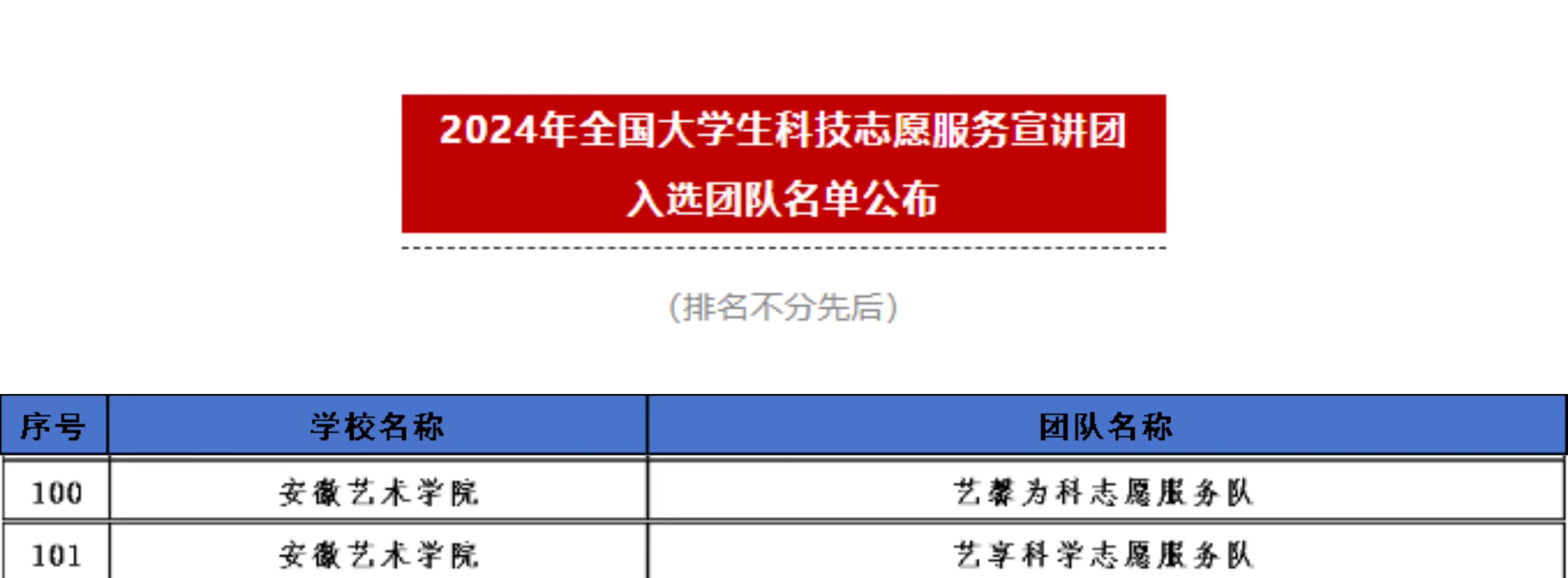 日前,由中国青年志愿者协会、中国科学技术协会宣传文化部联合开展的2024年全国大学生科技志愿服务入选团队名单公布,金沙集团联合安徽省科技馆组织申报的“艺馨为科”“艺享科学”两支志愿服务队成功入选。