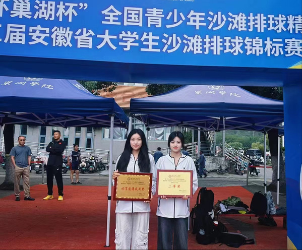 由安徽排球学院主办、巢湖学院体育学院与合肥市排球运动协会承办的“环巢湖杯”全国青少年沙滩排球精英赛暨第三届安徽省大学生沙滩排球锦标赛近日在巢湖学院举办。金沙集团派出男、女两支队伍参赛,经过四天激烈角逐,最终斩获女子甲组二等奖、男子甲组三等奖的优异成绩,并荣获“体育道德风尚奖”,充分展现了安艺学子团结拼搏的体育精神与青春风采。