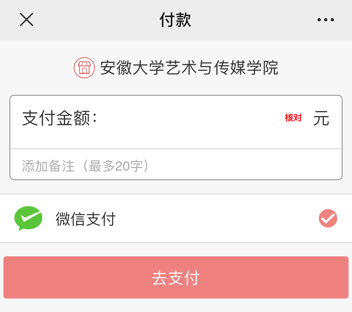4.再次核对缴费金额无误后,选择微信支付方式,点击去支付。