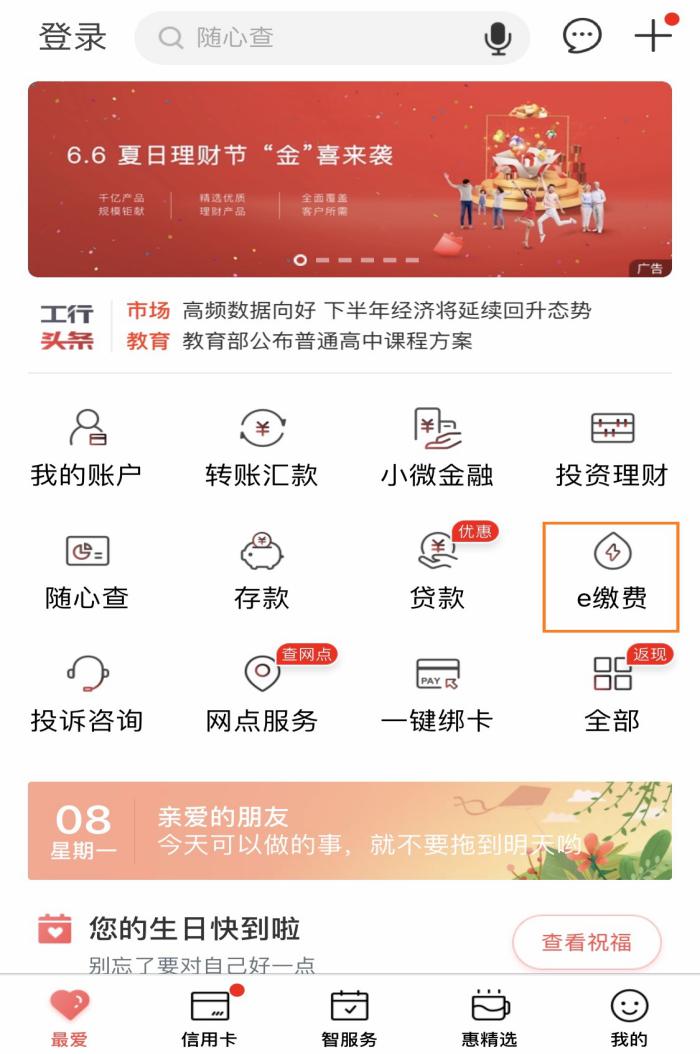 2.点击e缴费。