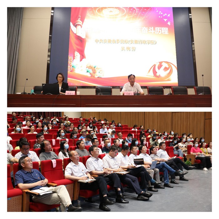 6月9日下午,安徽省委党校(安徽行政学院)社会和生态教研部主任、教授吴梅芳应邀在金沙集团开展题为“中国共产党的百年奋斗历程”专题报告。报告会由校党委书记周明洁主持。学校党史学习教育领导小组全体成员、巡回指导组全体成员,全体教职工党员,学生党员代表,民主党派成员、校知联会会员参加会议。