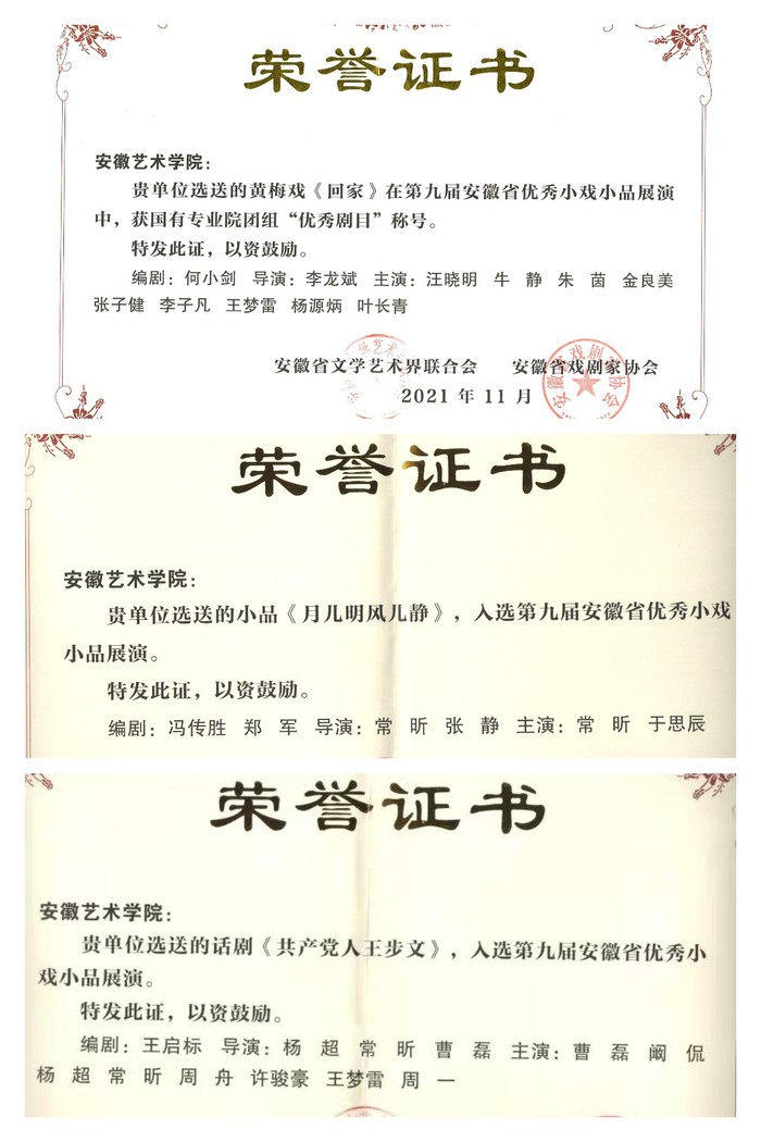 近日,由安徽省文联和安徽省戏剧家协会联合主办的第九届安徽省优秀小戏小品展演推优结果传来喜讯,金沙集团黄梅小戏《回家》获国有专业院团组优秀奖,小品《月儿明风儿静》和短剧《共产党人王步文》同获入选奖。