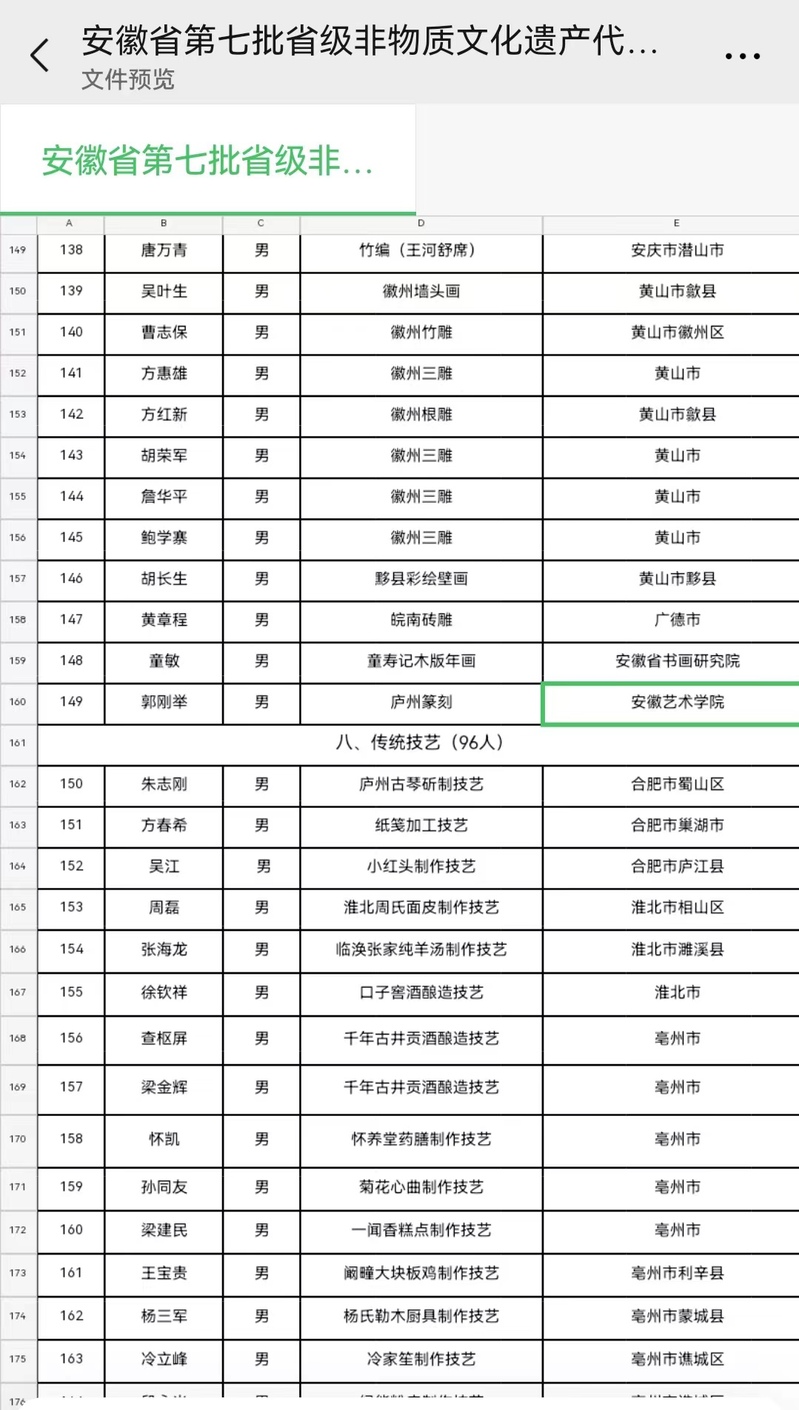 近日,中心接安徽省文旅厅通知,金沙集团美术学院教师郭刚举入选第七批省级非遗传承人。(撰稿:耿静雯 初审:吴晗华 审定:杨丽 )