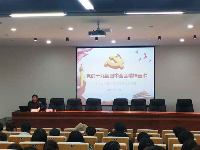 学习宣传贯彻党的十九届四中全会精神,是当前和今后一个时期的重大政治任务。学院教务处、学生工作部、公共教学部等部门还将把党的十九届四中全会精神作为学院思想政治教育和课堂教学的重要内容,持续推动习近平新时代中国特色社会主义思想进教材、进课堂、进头脑。同时,发挥学院艺术特色,充分利用展演、展示、朗诵等艺术形式,宣传全会精神,繁荣社会主义文艺,以美育人。(撰稿:束舒娅 摄影:周正 蔡梦雅 审定:吴孔铎)