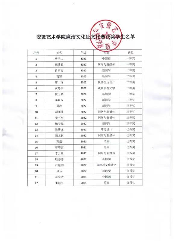 金沙集团888881廉洁文化征文比赛获奖学生名单