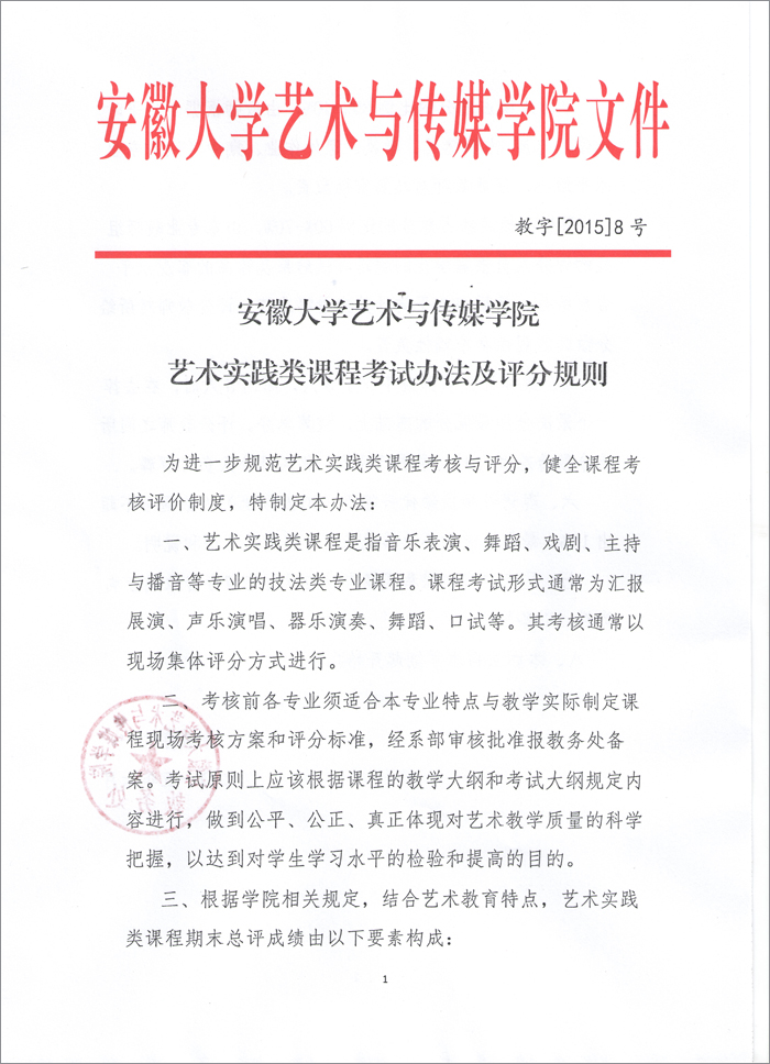 安徽大学艺术与传媒学院艺术实践类课程考试办法及评分规则
