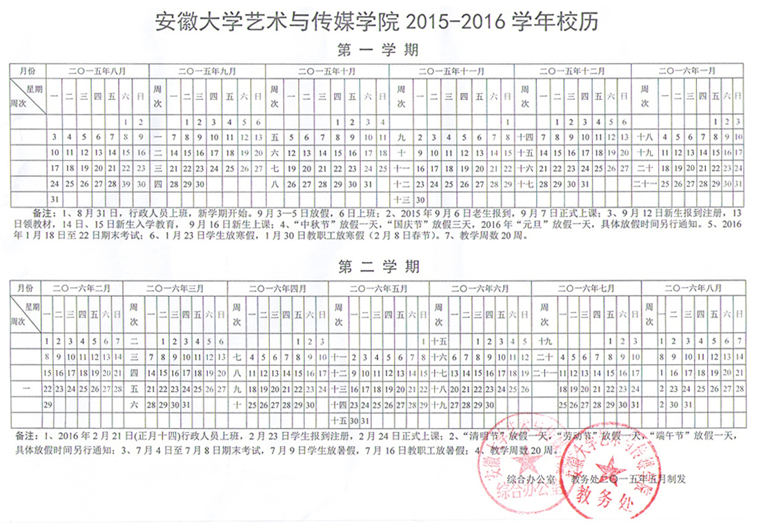 2015-2016学年校历
