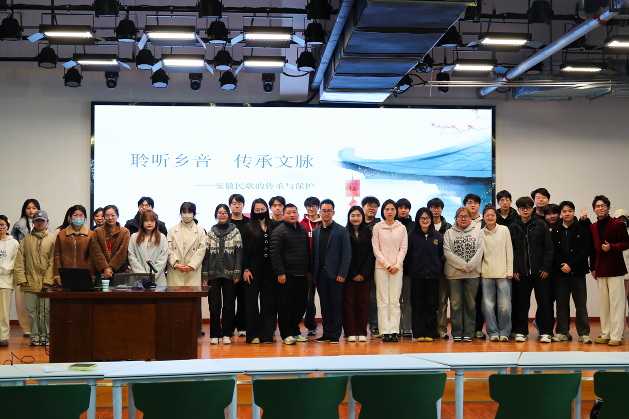 讲座围绕“基于校企合作的民族技艺人才培养”主题展开,蒋涛从民歌的定义、民歌与民族声乐、传承民歌的意义以及传承方式四个方面进行了深入浅出的讲解。他结合自身艺术实践,以生动的案例和优美的歌声,带领同学们领略了安徽民歌的独特魅力,阐释了民歌作为民族文化瑰宝的重要价值。