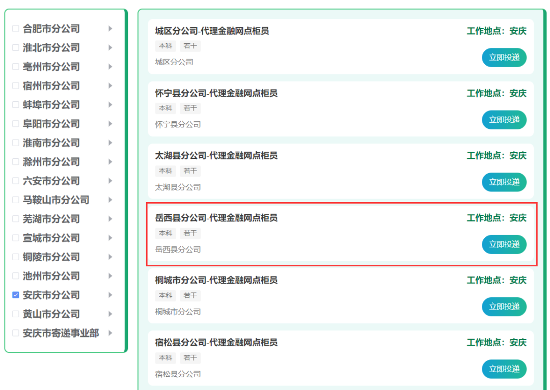 岳西县岗位如下