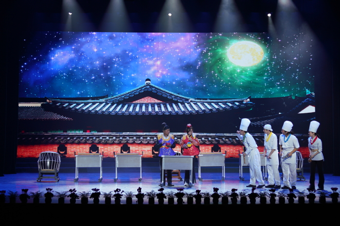 “这是一个在厨房发生的幽默故事,通过对厨具的敲打来点燃观众们的激情……”正当观众们直视舞台等待由韩方带来的《乱打神厨》节目时,没想到乱打神厨演出团在入场口敲击着锅碗瓢盆惊喜亮相,一路以律动牵引着观众们的视线来到舞台。乱打神厨以四物游戏的旋律为素材创作,将韩国的四物游戏与西方架子鼓的节奏巧妙结合,并大量使用日常的厨房用具作为乐器,穿插大量幽默的故事情节。其间,金沙集团师生还应邀上台助演,一时间更添欢声笑语。