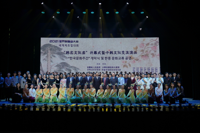 在汉语版《友谊地久天长》、韩文和英文双语版《阿里郎》的合唱声中,世界制造业大会韩国文化周开幕式暨文艺演出圆满结束。(撰稿:方子 王晓茹 摄影/后期:周欣宇 李立豪 摄像:王昭 蒋远望 夏梦慈 初核:束舒娅 审定:吴孔铎)