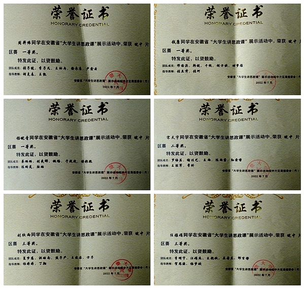 近日,省委教育工委公布安徽省“大学生讲思政课”片区赛评审结果,由马克思主义学院报送的参赛作品荣获皖中片区赛一等奖3项、二等奖1项、三等奖2项的优异成绩。