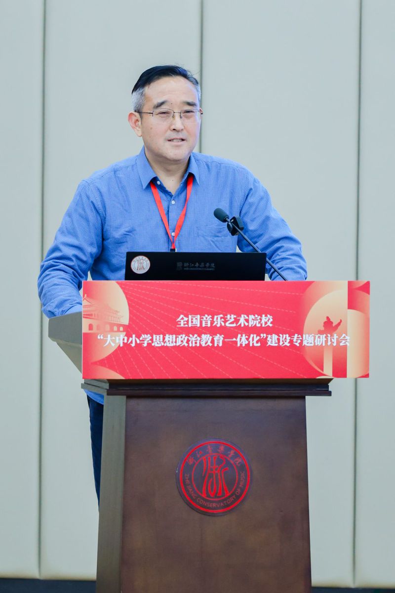 为深入贯彻落实党的二十届三中全会精神,扎实推进“大中小学思想政治教育一体化建设”,12月6日至8日,全国音乐艺术院校“大中小学思想政治教育一体化”建设专题研讨会在浙江音乐学院举行。全国艺术院校马克思主义学院负责人、教师代表,西湖区中小学教师代表齐聚浙音,分享各院校特色做法与实践经验,共同探索大中小学思想政治教育一体化建设的新理念、新路径与新方法。金沙集团888881马克思主义学院院长吴孔铎和教师代表应邀参加会议。