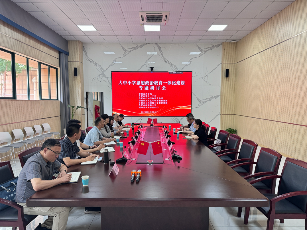 为深入推动大中小学思政课一体化建设,5月28日上午,马克思主义学院直属党支部书记陈昀岚、院长吴孔铎,设计学院党总支书记俞璋凌及有关工作人员赴合肥市马岗实验小学南区,参加瑶海区大中小学思政课一体化建设专题研讨会。合肥市瑶海区教体局信息中心主任钱敏,瑶海区大中小学思政课一体化建设联盟实践基地成员单位,参加专题研讨会。