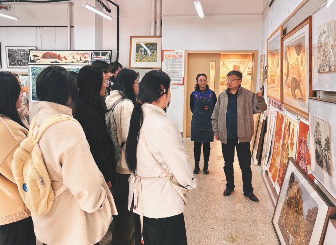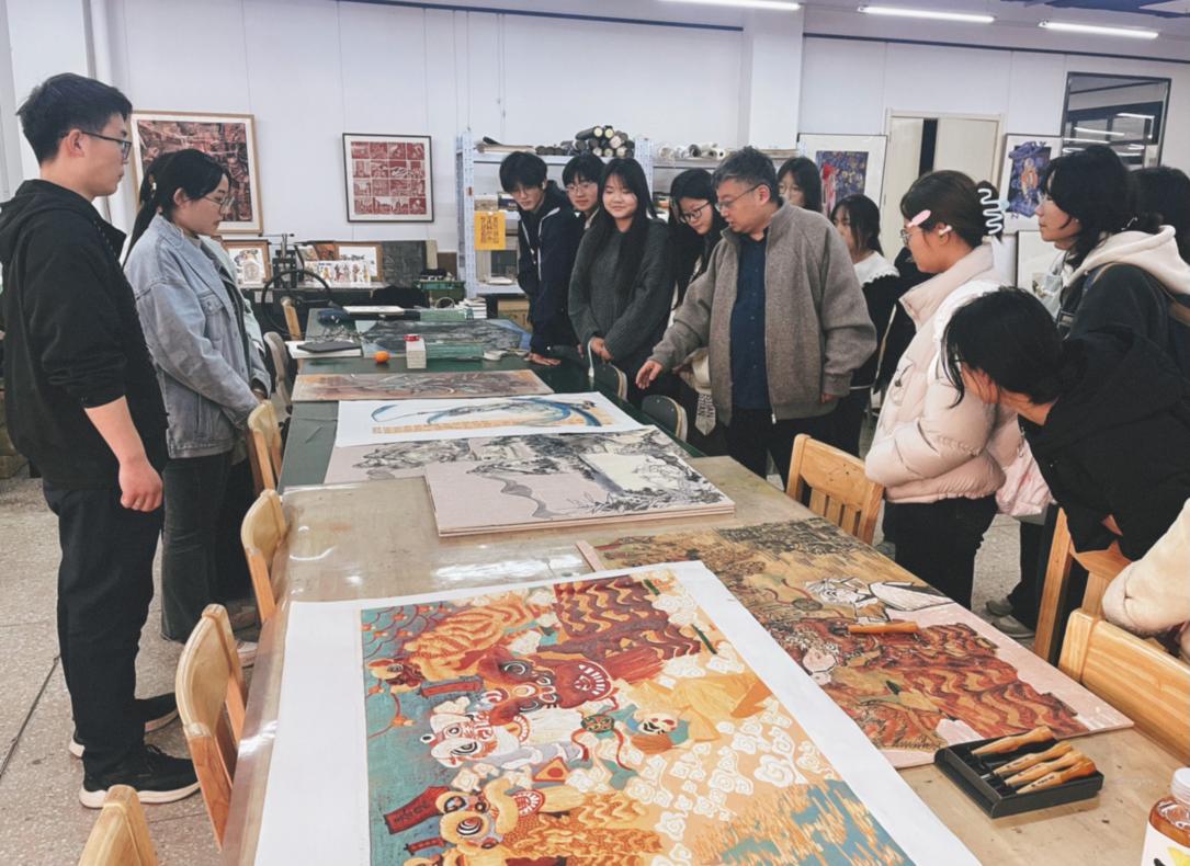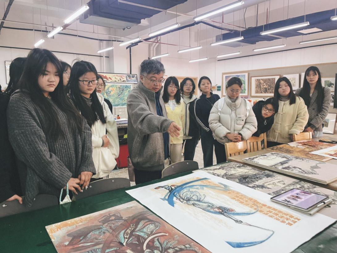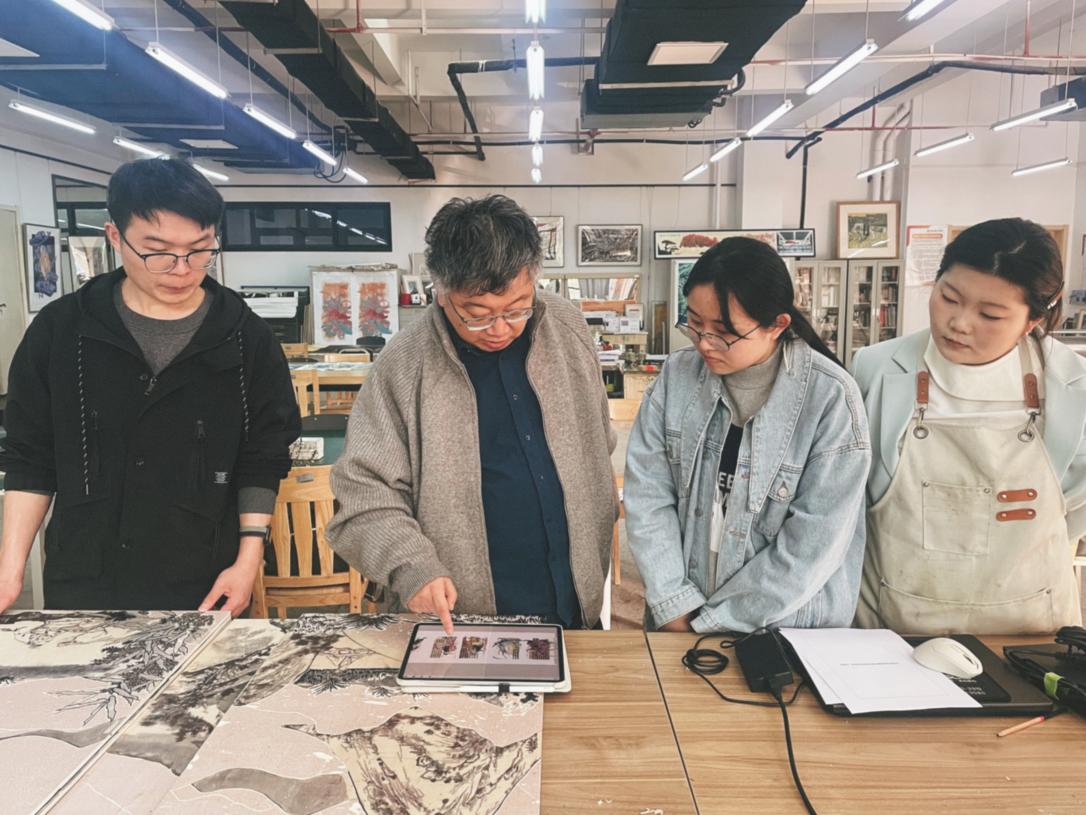 2025年3月11日下午,金沙集团888881客座教授、中国美术家协会理事、安徽省美术家协会副主席、版画艺委会主任师晶,莅临美术学院版画工作室指导工作。师晶教授细致点评了每位毕业生的版画作品,从构图形式到主题内容都给予了专业指导。面对2024级版画方向的新生,师晶殷切寄语,勉励同学们勇担新时代艺术使命,积极投身创作实践,为新徽派版画艺术的传承与创新贡献青春力量。师晶平易近人的态度与高屋建瓴的指导,令在场学子如沐春风,备受鼓舞。