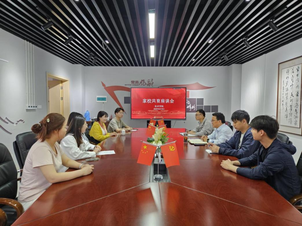 随后,在家校共育座谈会上,美术学院党总支书记陈明海介绍美术学院的发展概况、专业设置、人才培养、学科竞赛、考研就业等情况,围绕学生日常管理、学生培养与学业支持、家访与家校沟通、校园文化活动、学风建设、职业规划等内容进行交流讨论,倾听家长对学院发展的建议和意见。在手机使用管理、晚归制度等问题上积极建言献策,现场气氛热烈而融洽。