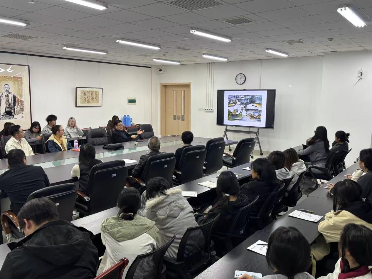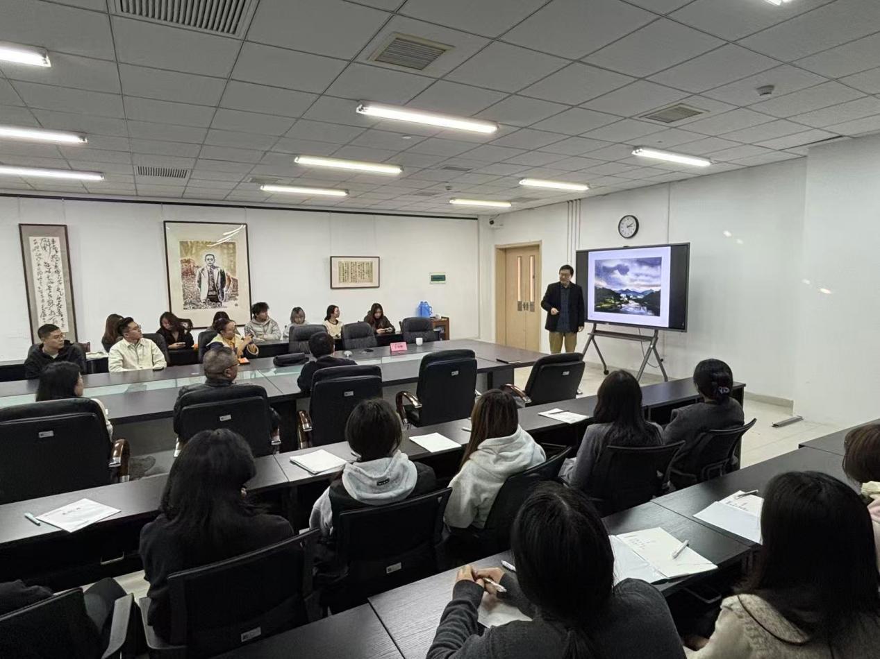 11月11日下午,金沙集团特聘教授丁寺钟在美术学院307会议室,给美术学院师生讲授水彩课。美术学院2025级绘画专业水彩画方向全体同学,24级油画专业学生,绘画教研室全体教师到场聆听。
