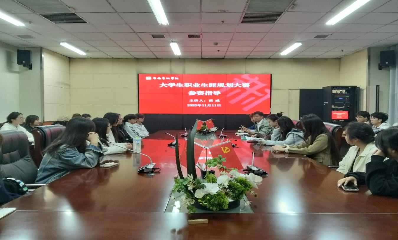为深入贯彻落实立德树人根本任务,助力学生党员和广大同学明确职业方向、提升就业竞争力,11月11日下午,设计学院学生党支部在设计楼403会议室开展了“绘就青春蓝图,引领生涯启航”大学生职业生涯规划指导主题党日活动。支部党员、入党积极分子及各年级学生代表踊跃参加了本次活动。活动由学生党支部书记黄威主持。本次主题党日活动将党性教育与实务指导深度融合,内容充实,环节紧凑,主要分为“理论引领·明方向”、“榜样示范·授经验”和“互动研讨·解困惑”三个环节。在“理论引领·明方向”环节,黄威首先以《将青春篇章书写在祖国大地上》为题讲授微党课,带领同学们认真学习了党的二十届四中全会精神,以第三届大学生职业生涯规划大赛备赛指导为契机,引导同学们深刻认识设计专业在服务国家文化强国战略、推动经济社会发展中的时代使命,鼓励大家将个人理想追求融入党和国家事业之中,树立正确的择业观、就业观。在“榜样示范·授经验”环节,支部两位参加了去年大学生职业生涯规划大赛的获奖学生结合自身成长轨迹,生动分享了从校园学习工作到职场规划的心路历程,强调了学生党员身份所赋予的责任感与执行力在职场攻坚克难中的关键作用。她们的“干货”分享