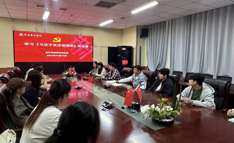 近日,设计学院学生党支部在设计楼403会议室专题学习《习近平谈治国理政》第五卷。支部书记黄威领学,支部全体党员和部分入党积极分子参加学习。活动伊始,黄威强调了学习《习近平谈治国理政》第五卷的重要性,指出这是当前和今后一个时期的重要政治任务,希望全体党员能够认真研读、深刻领会,切实把思想和行动统一到党中央的决策部署上来。学习会上,支部成员首先通过领学方式,系统梳理了《习近平谈治国理政》第五卷的框架结构和主要内容,重点围绕“把握新发展阶段,贯彻新发展理念,构建新发展格局”、“推动高质量发展”、“文化自信”等与青年成长、国家发展密切相关的专题进行了深入研读。与会同志认识到,这部重要著作是推进马克思主义中国化时代化的最新成果,全面系统反映习近平新时代中国特色社会主义思想的权威著作,为青年学子认识时代、把握方向、砥砺前行提供了强大的思想指引和实践指南。随后,全体党员共同观看了《习近平谈治国理政》第五卷的相关视频资料,直观感受其治国理政的宏伟蓝图和深厚为民情怀。在观看过程中,大家全神贯注,不时记录重点内容,现场学习氛围浓厚。在交流研讨环节,全体党员围绕如何将《习近平谈治国理政》第五卷中的理论知识转