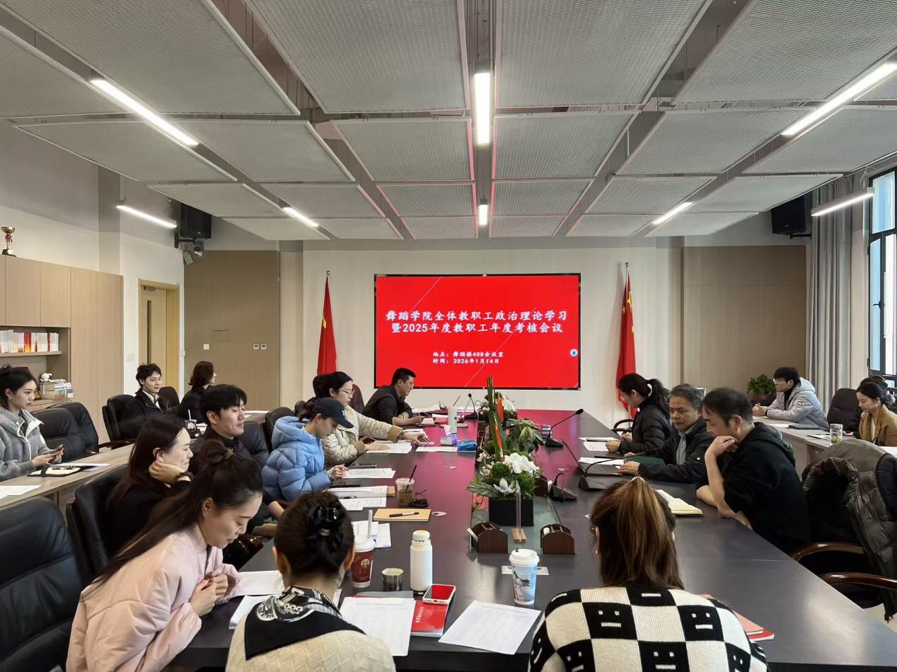 舞蹈学院近日开展全体教职工政治理论学习暨2025年度教职工年度考核。会议由舞蹈学院党总支书记韩大国主持,全体教职工参会。会上,全体教职工集体学习了习近平总书记重要文章《学习好贯彻好党的...