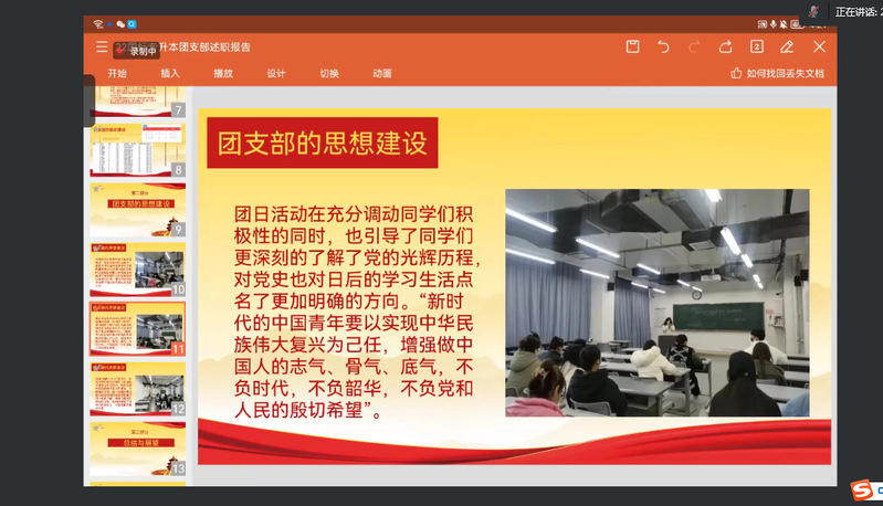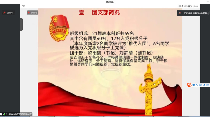 为深入学习宣传贯彻党的二十大精神,指导推动团支部加强建设、规范运行,不断提升组织力,彰显政治功能和社会功能,12月21日下午,舞蹈学院团总支召开线上团支部书记述职暨团支部“对标定级”工作复核认定会。会议由舞蹈学院团总支书记贾方敏主持,舞蹈学院团总支委员、各团支部书记参会。
