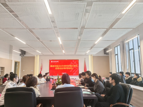 2025年春季学期开始,为深入掌握在校大学生思想动态,优化思想政治教育内容、方法和途径,系统全面地掌握学生在新学期的思想动态,倾听学生的心声、帮助学生解决实际问题,提高学生工作管理水平,促进学生的身心健康和全面发展,3月11日,舞蹈学院开展了春季学期学生思想动态调研座谈会。