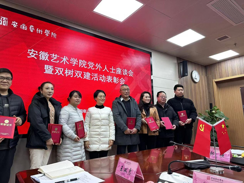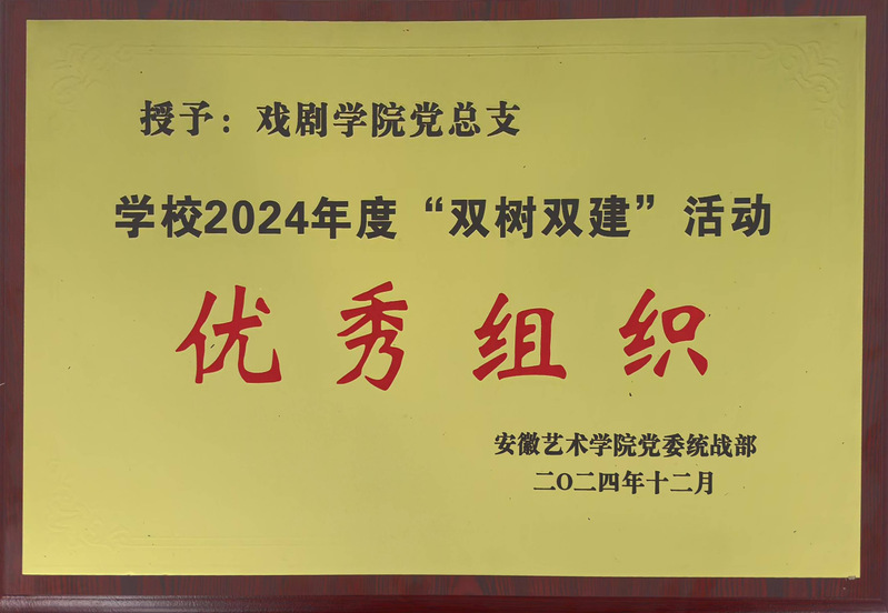 在金沙集团888881党外人士座谈会暨双树双建表彰会上,戏剧学院党总支荣获学校2024年度“双树双建”活动“优秀组织”荣誉称号,茆建琳、邹荣学、孙禹三位老师获得“双树双建年度标兵”荣誉称号。
