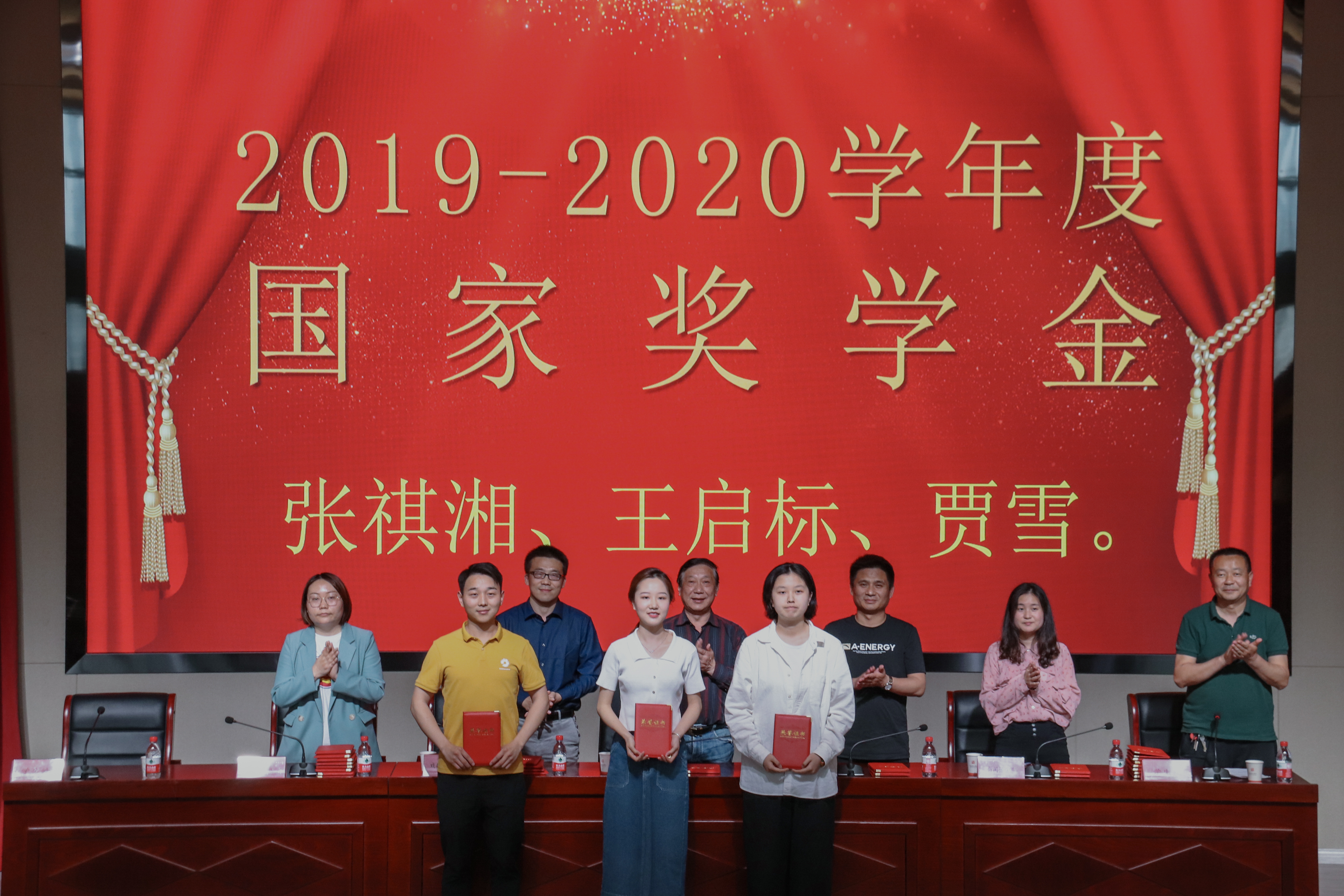 表彰大会在雄壮的国歌声中拉开帷幕。大会宣读了各项表彰文件(通知),表彰在2019-2020学年度国家奖学金、国家励志奖学金、校级奖学金、校级专项奖、优秀学生干部、三好学生、先进班集体、校级品学兼优毕业生、厉行节约文创类产品设计比赛等各类奖项中获奖学生,以及获2019年度、2020年度安徽省高校“优秀专职辅导员岗位津贴”的辅导员。