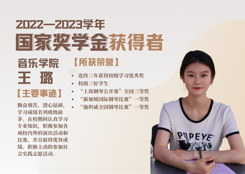 2022-2023学年国家奖学金获得者风采展示|音乐学院 王璐