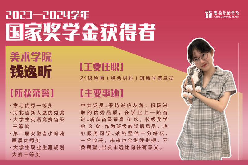 2023-2024学年国家奖学金获得者风采展示|美术学院 钱逸昕