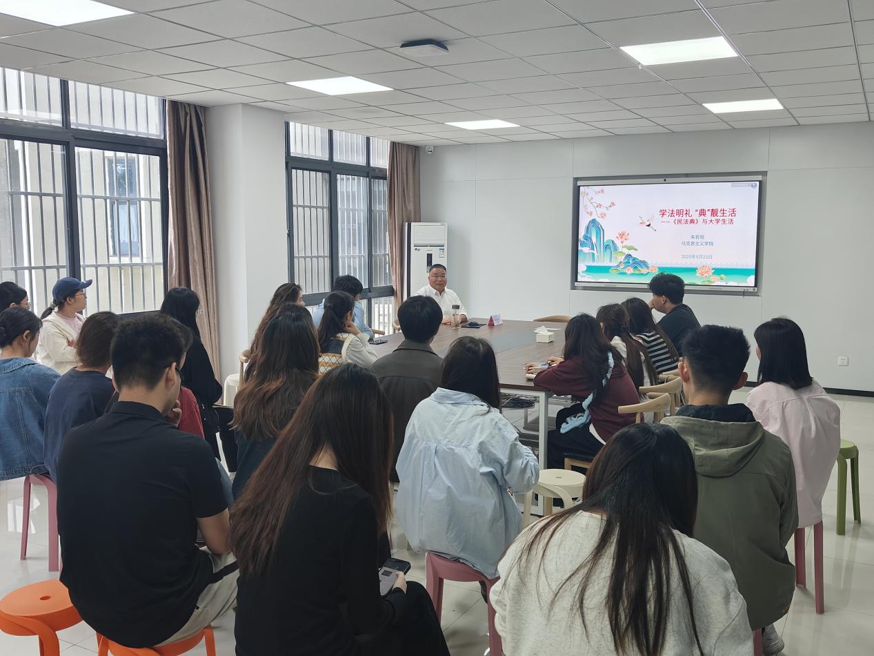 5月23日下午,学校举办《学法明礼,“典”靓生活——民法典与大学生活》专题讲座。本次讲座由马克思主义学院副教授朱哲恒博士主讲,各二级学院思政委员、退役士兵、校长助理等学生代表参与了此次讲座。