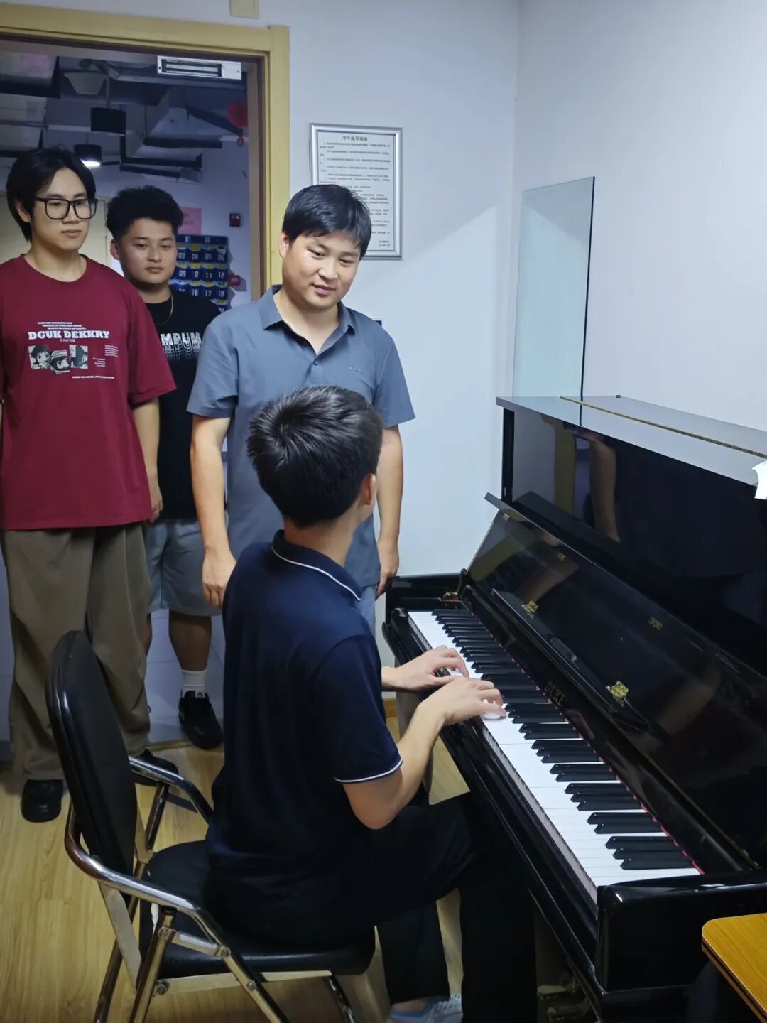 2024年起牵头打造学风建设长效机制,依据学校相关规定制定音乐学院学生管理制度,严格执行考勤等制度,设计“班级一周一考勤表”,推行“课堂手机入袋”等制度;创新家校协同模式,组建“学生助学团”与“亲友助学团”,组织开展征文比赛等活动,每晚进行宿舍晚归检查,组建6个学习小组并推动每周开展活动。