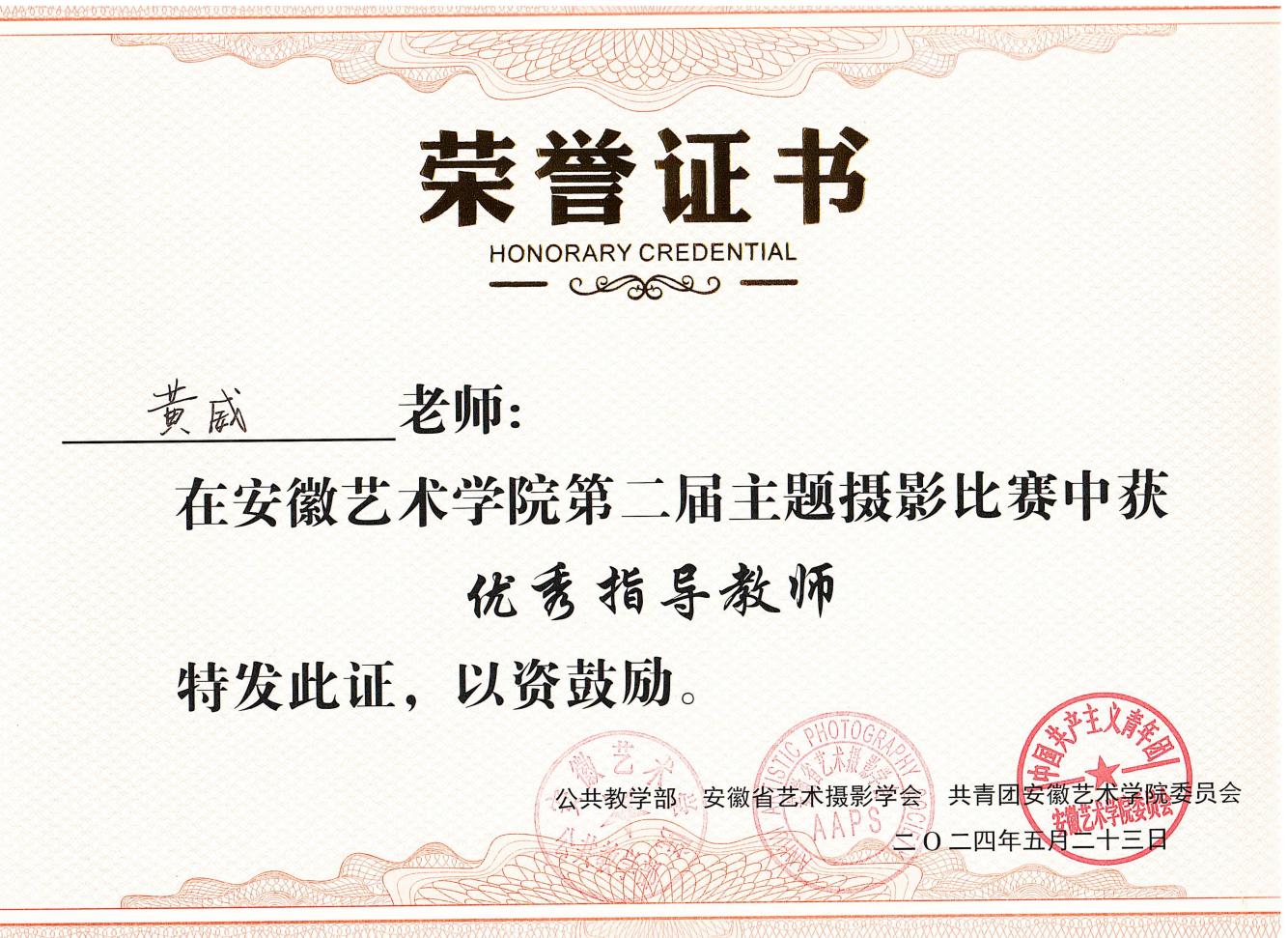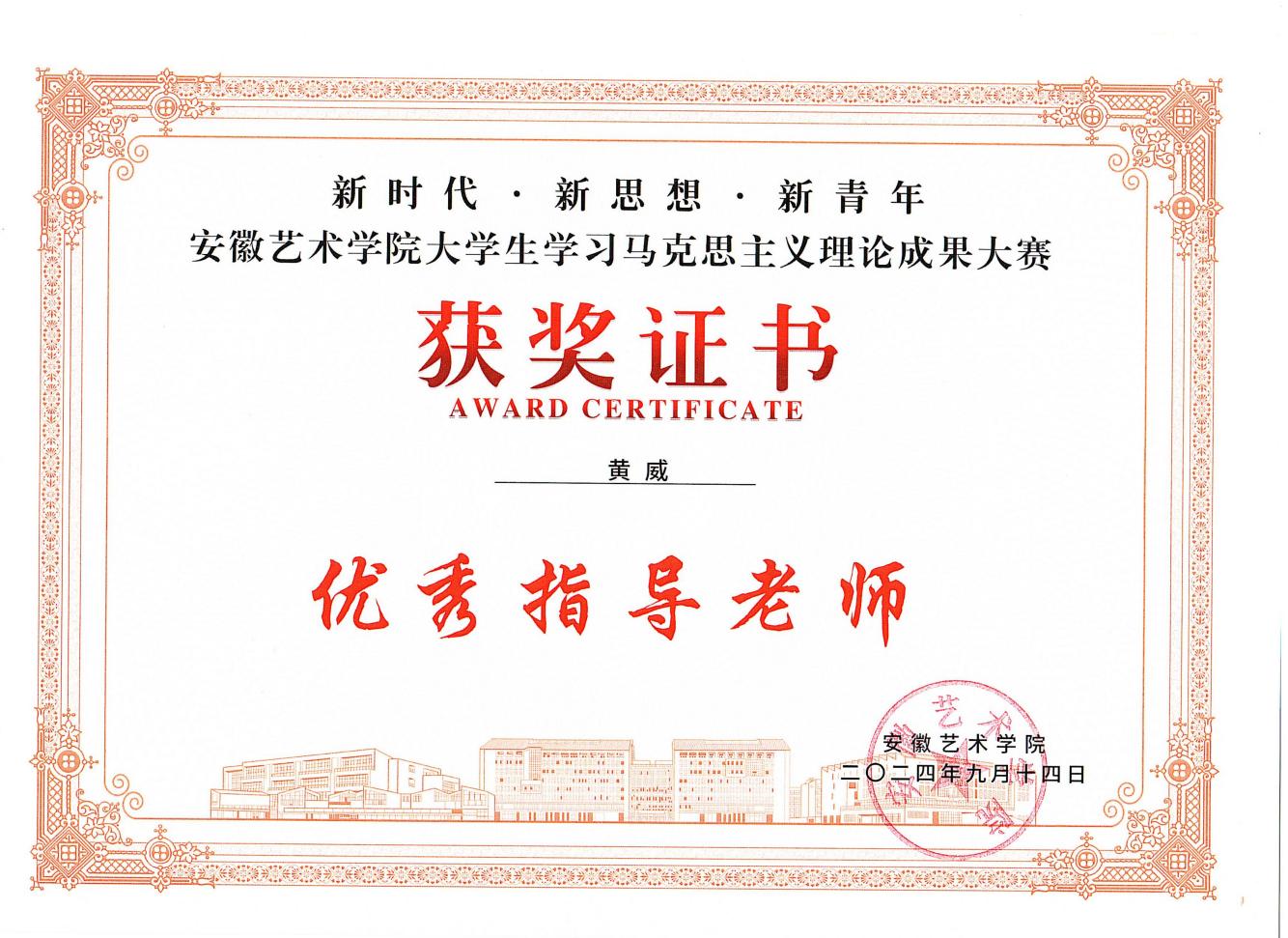 工作中,黄威同志紧密结合艺术类学生的思想特点和行为特征,积极探索思政教育的新途径、新方法。一方面,坚持用好课堂教学主渠道,依托主题班会、党团日活动等,深入开展理想信念教育、社会主义核心价值观教育、爱国主义教育,引导学生树立正确的世界观、人生观、价值观,将个人艺术追求融入时代发展洪流。另一方面,注重将思政教育融入专业实践,组织学生参与“设计改变家乡”、“非遗传承实践”等实践品牌活动,让学生在服务人民、奉献社会中砥砺品格、升华思想;利用专业展览、作品评选等契机,引导学生用艺术作品展现时代风貌、传递正向能量,实现思政与艺术的有机融合。通过持续努力,所带学生理想信念坚定,积极向党组织靠拢。在所带学生中,吴爽同学入选安徽共青团大学生科技创新志愿服务队,王馨悦同学担任校团委副书记(学生),胡姗姗和朱雨欣2名同学担任校长助理,所带班级黄思营和朱雨欣2名同学获2024年安徽省大学生学习马克思主义理论成果大赛三等奖,胡姗姗同学获安徽省第九届学宪法讲宪法素养大赛三等级,23环境设计1班获得2025年校级“优秀红旗团支部”荣誉称号。