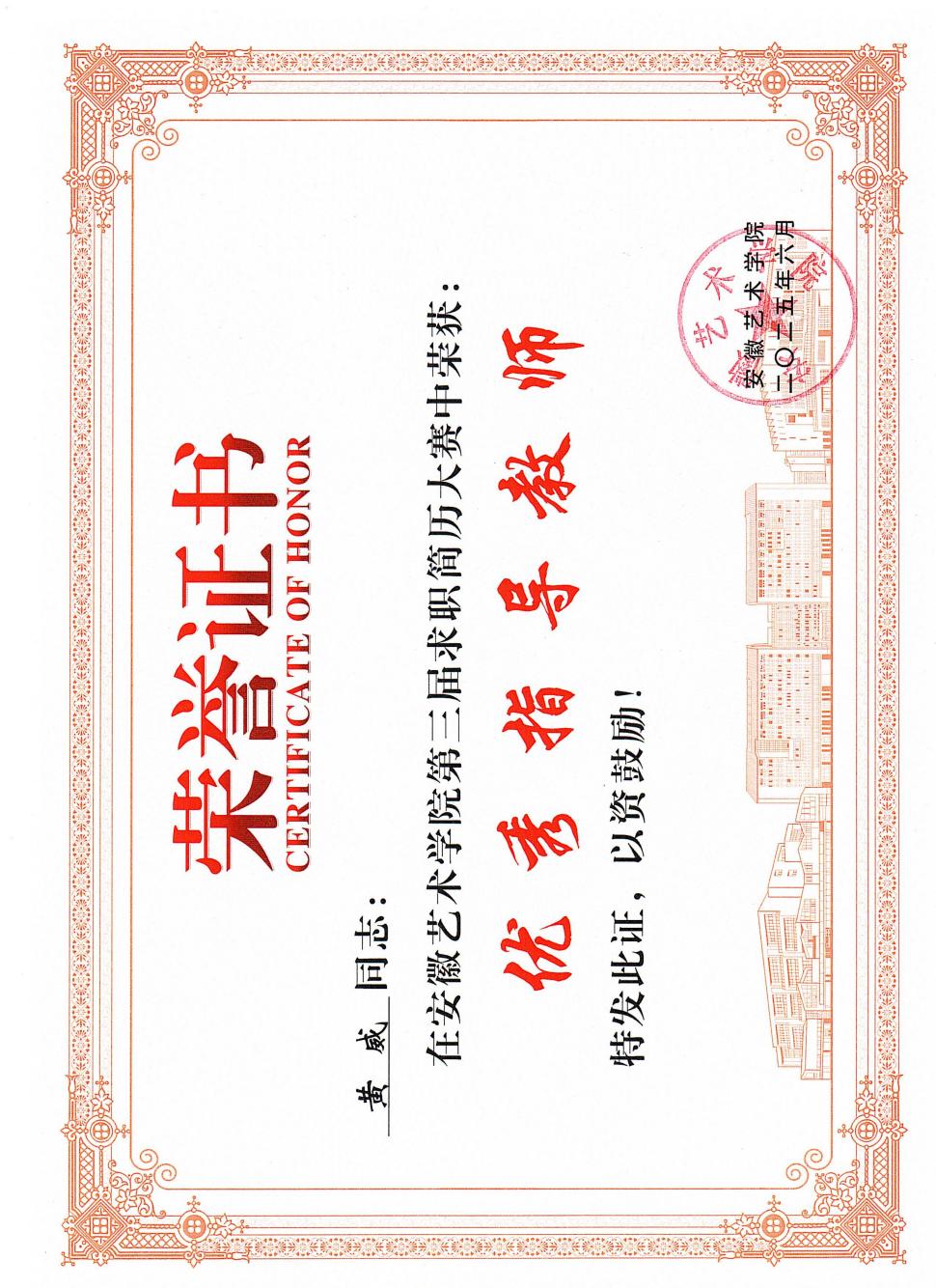 同时,黄威同志高度重视学生的职业生涯规划和就业指导工作。通过举办职业生涯规划讲座、简历制作与面试技巧培训,为学生提供全方位的就业服务。尤其针对设计行业的特点,引导学生树立正确的就业观、择业观,鼓励他们到基层一线、到需要创意设计的地方施展才华。所带学生王馨悦获得2025年金沙集团888881第三届简历大赛一等奖、黄思营获三等奖。黄威被评为金沙集团888881第三届简历大赛优秀指导教师。