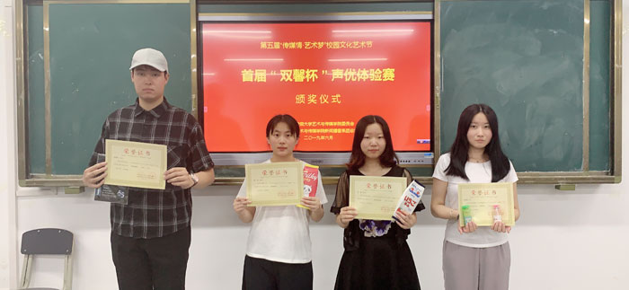 为丰富同学们的课余生活,让同学们感受到声音的独特魅力,6月12日下午,由学院团委主办、新闻播音系团总支承办的第五届校园文化艺术节之首届“双馨杯”声优体验赛圆满落下帷幕。