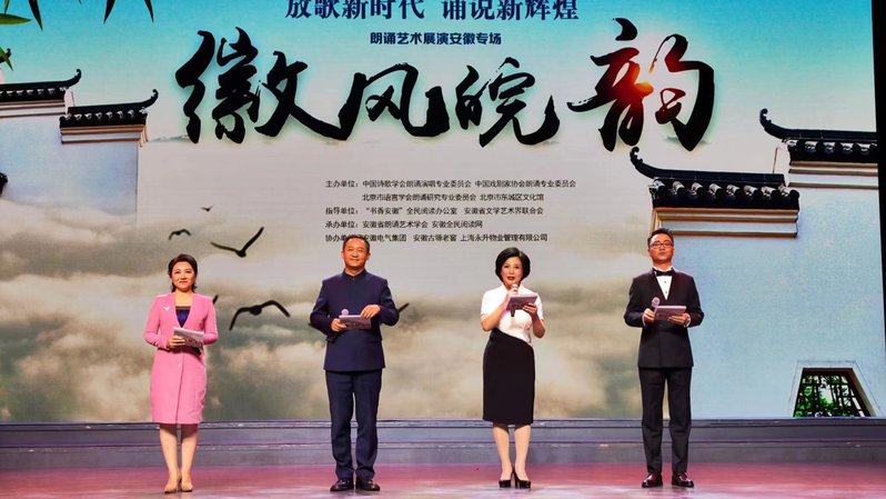 9月29日,“放歌新时代 诵说新辉煌”徽风皖韵朗诵艺术安徽专场展演在北京东城区文化馆举办,传媒学院党总支应邀组织党员教师蔡正兰、张雷雷、王雅卓赴京参加演出。