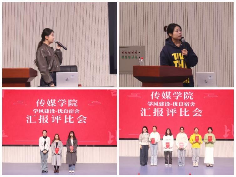 10月21日,传媒学院团总支于播音楼312报告厅举办优良学风宿舍评比活动。教科研办主任申莹和、学管办主任陈伟伟、团总支副书记刘欣慰出席。