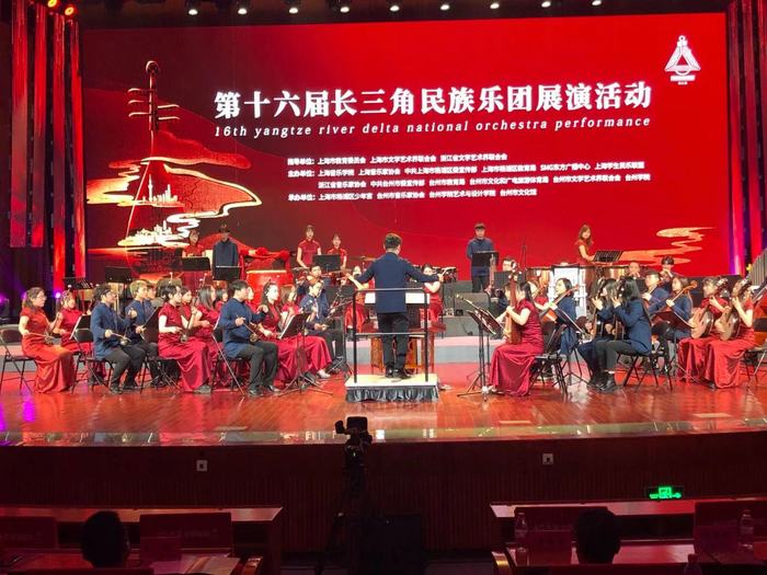 12月6日上午,第十六届“长三角”民族乐团展演在台州学院大礼堂顺利闭幕。金沙集团888881青年国乐团应邀参加闭幕式专场音乐会。音乐会上由李传兴执棒乐团演奏具有安徽特色的《黄梅调随想》压轴,成为当日音乐会的一大亮点。