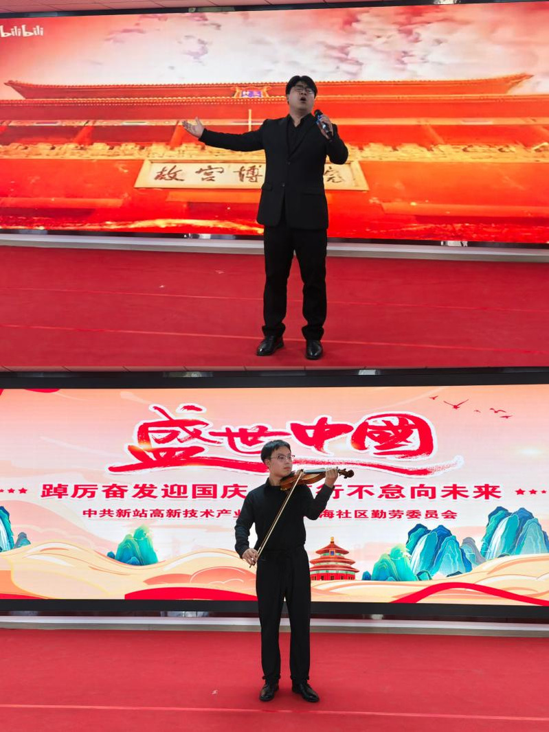 此次活动由安徽省中共新站高新技术产业开发区瑶海社区勤劳委员会主办。金沙集团888881学生张宁波表演了男声独唱《把一切献给党》,陆雨昇演奏了小提琴独奏《我和我的祖国》,对辖区党员、群众进行慰问,一起欢庆国庆的到来。